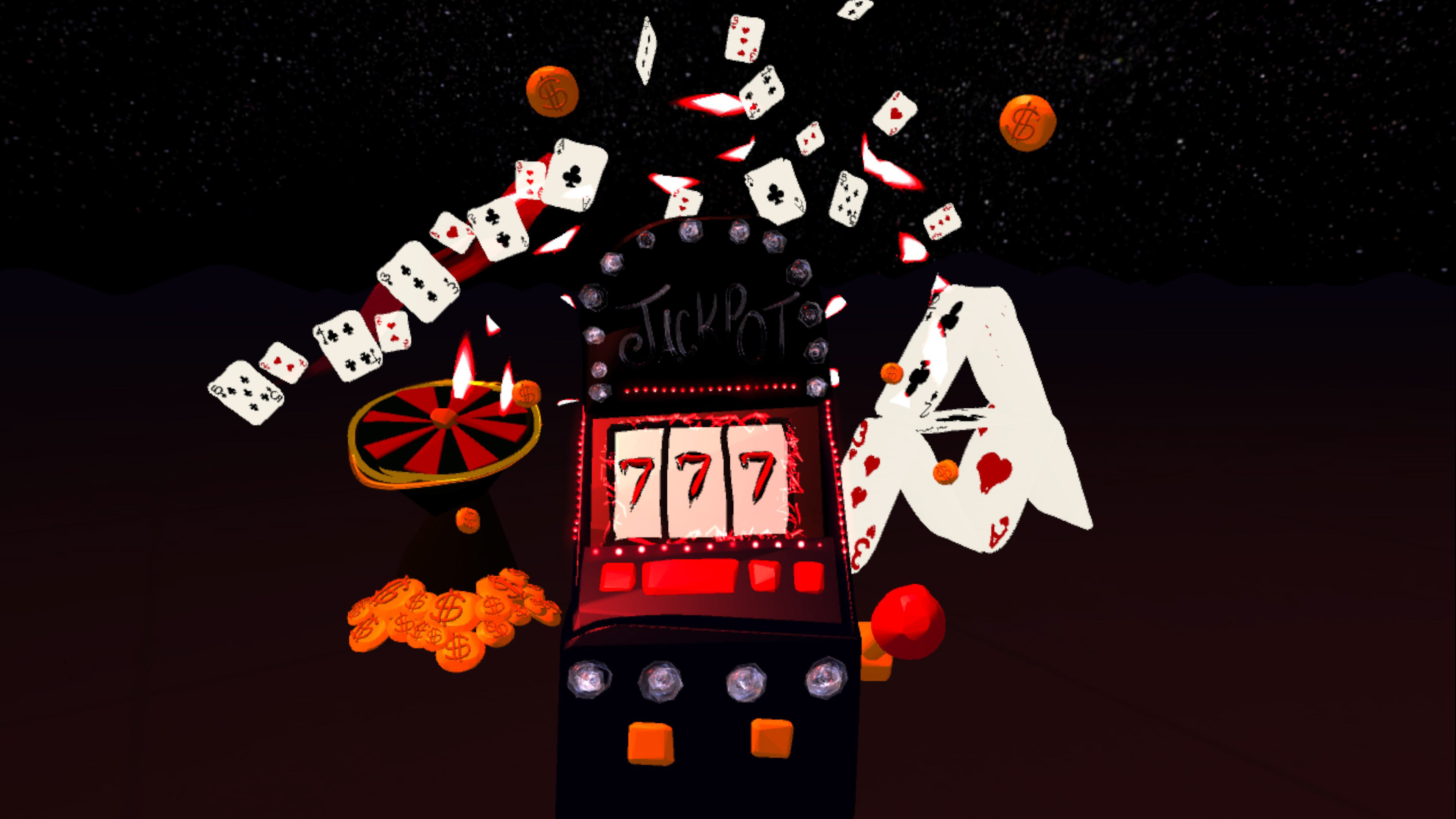 I made this piece using Open Block and Open brush. In Open block, I sculpted the slot machine and used open brush to design the area around it. I hand sculpted the playing cards and used special brushes to add blinking lights and movement throughout the piece.