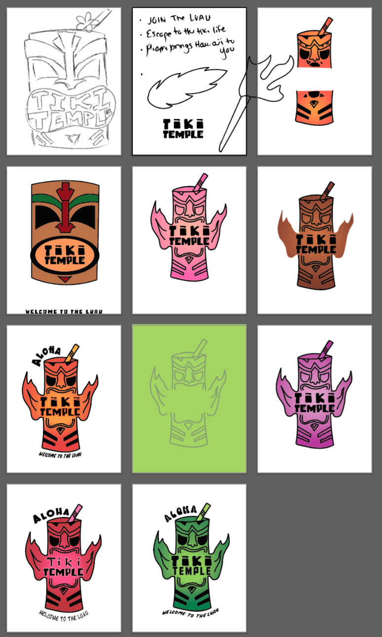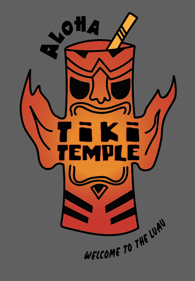 I chose fonts that created a Hawaiian style of tiki bar. I used the type on path tool within illustrator to create a more laid back and fun style. I wanted the logo to feel welcoming. I drew to the tiki mascot in illustrator and used gradients to fade the color from light to dark.