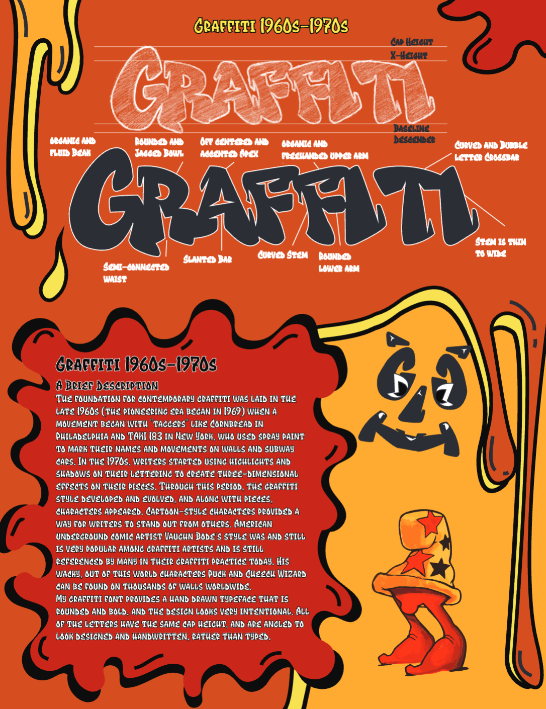 The goal of this project was to look into the 1970s style of typography. I wanted to research about the origin of graffiti.